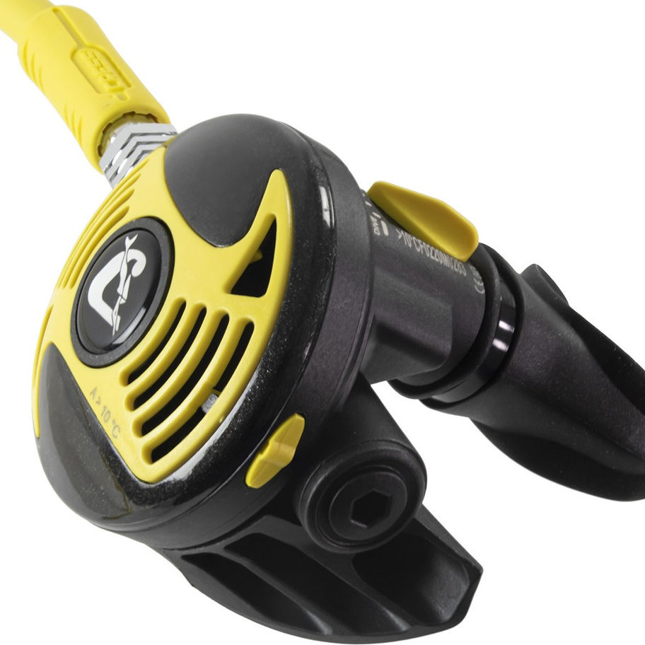 The Octopus XS2 has a body of the 2nd stage of traditional dimensions, made of technopolymers and a downstream delivery system with side valve (adjustable), simple and very reliable. An injection duct that channels a flow of pilot air towards the nozzle enhances its performance. The 2nd stage is equipped with a flow diverter that acts on the Venturi effect, with a dive/pre-dive function. Moved to the (-) position, it works as a pre-dive, for entering in the water and for the initial phases of the dive, while moving it to the (+) position allows the regulator to develop maximum performance. Constantly updated over the years, is a regulator that has many admirers in the world for its simplicity and robustness, which translate into practice in ease and low maintenance costs. The performance is high and suitable for any type of diving.
